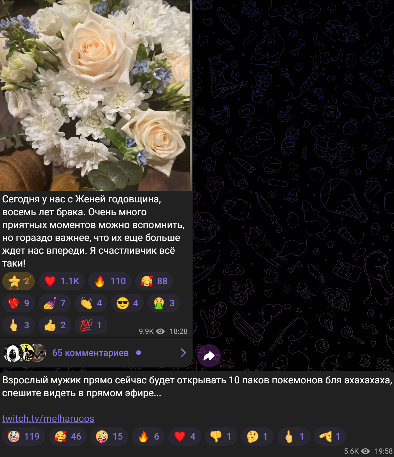 Кубоеб приехал от Факера после 5 часов дня в годовщину, весь день не виделся с женой, подарил букет и сразу видимо от большого счастья пошел открывать покемонов на стриме, вместо вечера с женой.
