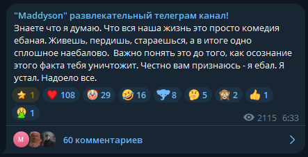 мадье то реально какие-то чувства уже стал испытывать эти неловкие заигрывания нелепые брачные игры привязываться стал эмоционально к бабке, а тут все резко оборвалось из-за какого ивента дебильного отсюда эта тряска позорная в этом даже постиронии никакой нет он реально мечтает все назад отмотать лишь бы алиночка простила