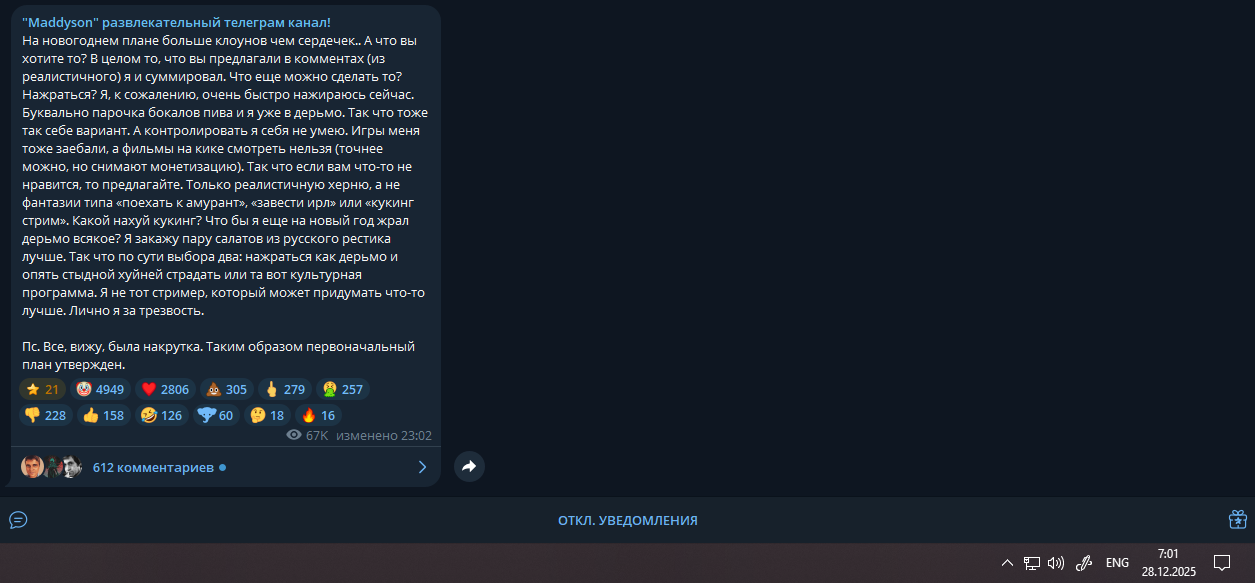 Мадьё, ставлю тебе ультиматум. Завтра Югибани подрубает стрим. Донатишь ей ок не миллион, 1000USD как Мужчина Честной Судьбы и я подписываюсь обратно и продолжаю ставить тебе сердечки и слушать твои голосовухи.