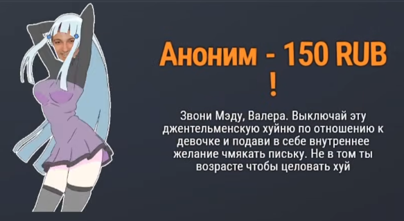 Это чмо по велению чмодья как собачка подрубила в последние часы стрима, чтобы отобрать очки у девушки. Человек-гнида, человек-хуесос, тварь на поводке у гнилюхи калоедисона.