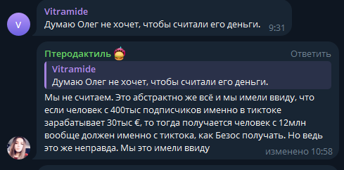 Тож забавный момент с вчерашнего стрима, мочеглоты уже явно рофлят над кнурявым и намекают, что раз уж всё так хуёво с деньгами, то можно было бы и в такси пойти поработать. Но кнур рофл не выкупает и продолжает по привычке тупо давить на пожалейку.