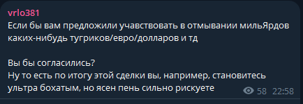 >>25915855 Это брухля пишит. По стилю видно. С характерные каверканья слов как будто 8 летка. Но это скорее с подачи кнура, и того что они обсуждают на самом деле "где наебать и кого чтобы получить дохуя и чтобы нам зв это ничего не прилетело и делать ничего не пришлось"
