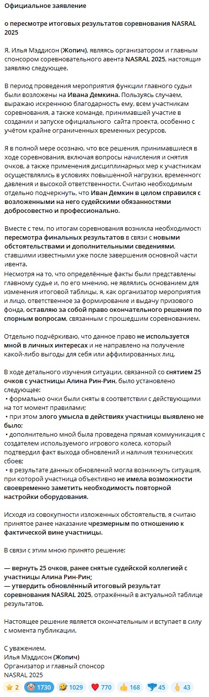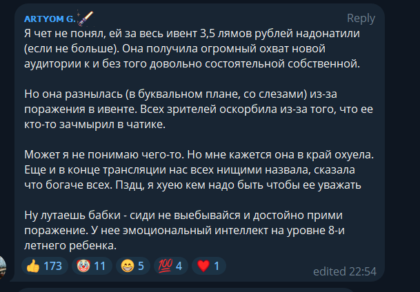 Да она еще будет долго оправдываться на стримах, так просто эту тему не закрыть.