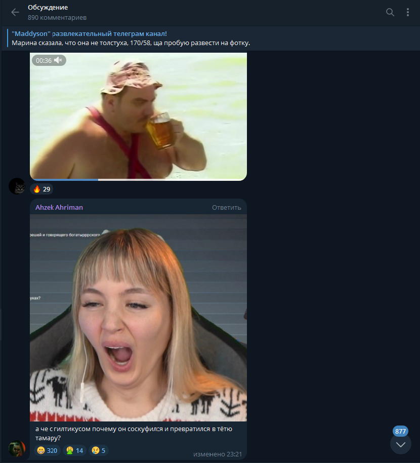 >я ни его не смотрю, ни её Ну, опустим то, что это очевидная шизофрения,- обсуждать тех, кого ты не смотришь и не ебешь за контексты, но ты ж понимаешь, что выступаешь полным долбоёбом, делающим выводы космического масштаба и космического же тупости на основании пары-тройки постов в тг??