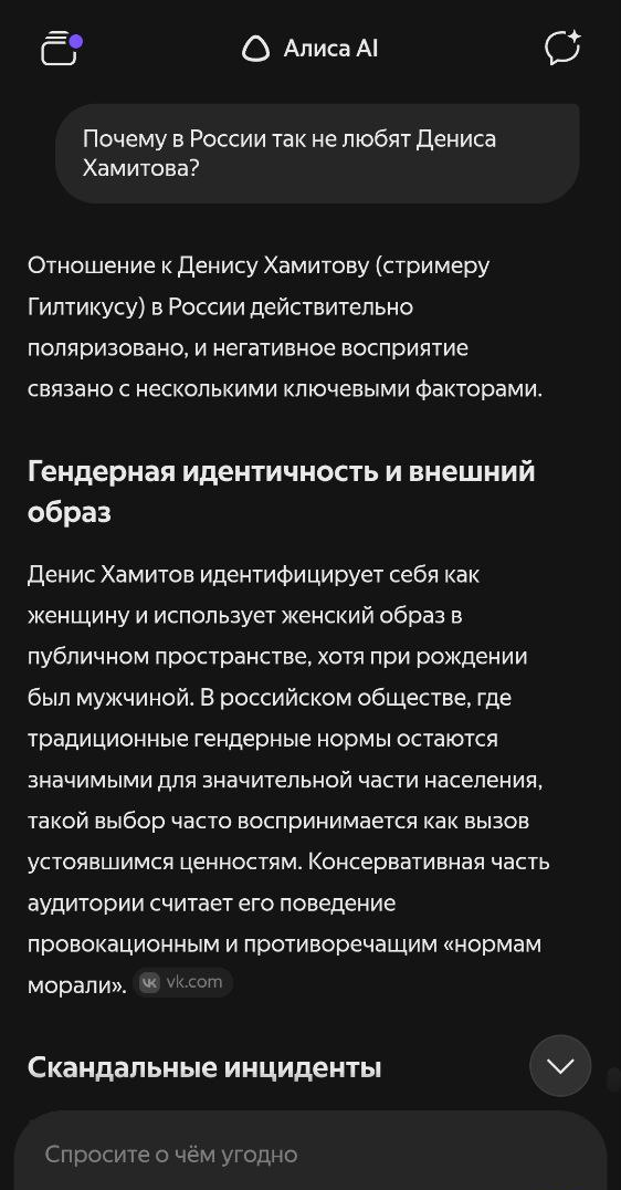 >>25910796 Башкирский фрик завидует собрату по стимерскому делу, который и более популярен и более успешен в финансовом плане. Значит можно и простить малютку Мэддисона за мисгендер и деднейминг малютки Хамитова. А вот обычным зрителям на твиче даже за вопрос по поводу скуфизации внешности выписывают или мут или бан. Те самые знаменитые принципы малютки Хамитова, которые работают очень выборочно. Ничего нового.
