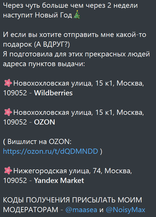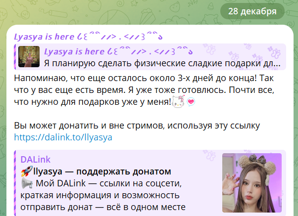>>25922643 Вот так вот, Женя всю неделю требовала от подписчиков подарки и всё просматривала что же там накупили, и почему видеокарты ещё нет, а Ляся сама дарит подарки зрилам, надо же в НГ можно не только получать подарки, но ещё и дарить, дикость какая!