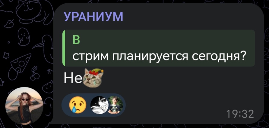 Ты его чат в тг видел там пиздец селедок от Наташи появилось