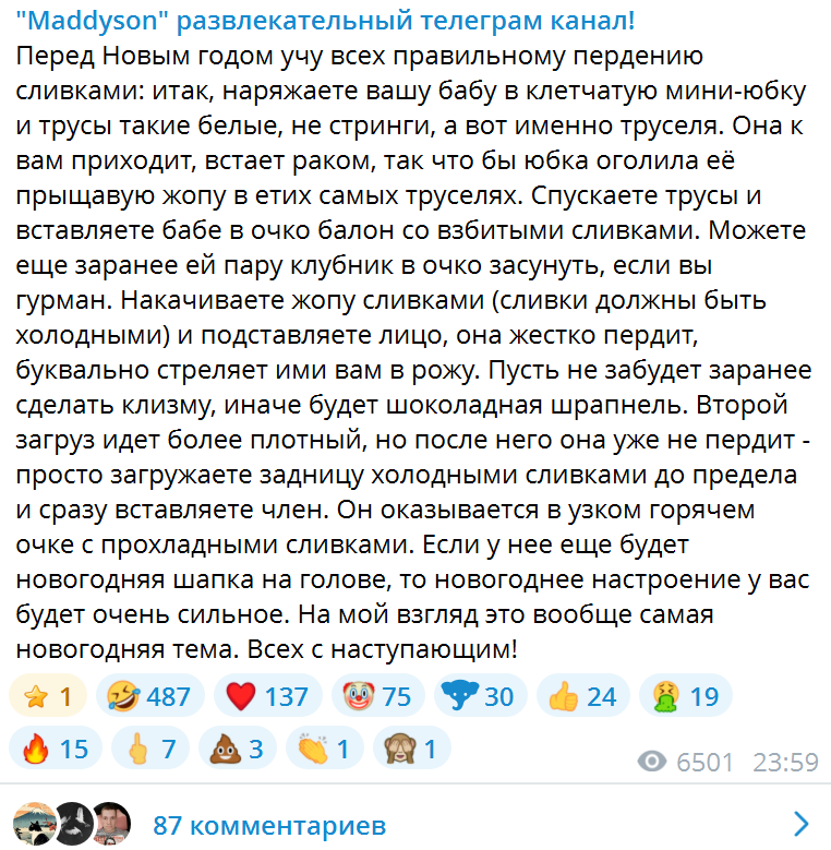 Про фейерверки кстати полную хуйню он написал. Я сам их никогда в жизни не запускал, потому что у меня друзей нет, но в компании друзей это реально весело и интересно. Но Чмодье (а точнее его админ) этот пост написал чтоб задобрить подписчиков данного канала инцелов омеганов нигилистов которых макали головой в унитаз и они стали мизантропами которые ненавидят нормиблядские фейерверки