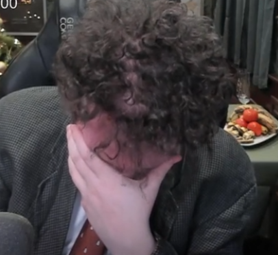 А я понял что стрим будет хуйней как только он вебку включил. Даже костюм не надел, сидит в сальной рубашке. Пиджак, рубашка, галстук — признак хорошего нг у чмодья.