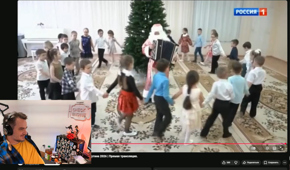 Он 100% американец. Молодой. Но чел подрубает стрим в новогоднем настроении зная, что 15% его аудитории русские. Никакого токса, никакой желчи, просто чел делает контент. Учитывая что у него сейчас полдень.