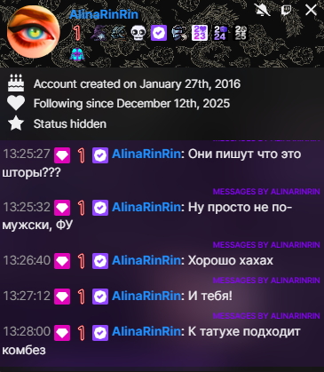 Ну а дальше общие темы т.к. он собственно пользователь твича, кросовки, шмот и т.д, походы в оперу и пр. херня.