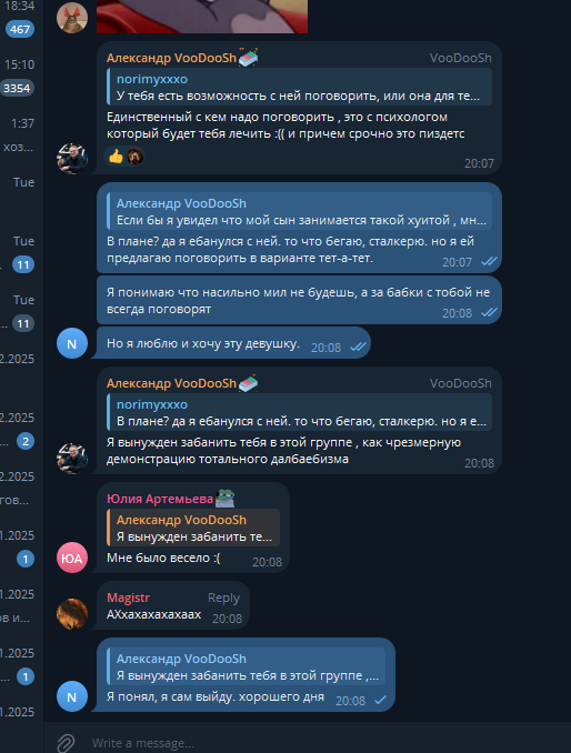 АХЫФАХЫФХАФЫХАФ ОПЯТЬ ЗЛОГО ВЫКЛАДЫВАЕТ ДА ИДИ ТЫ НАХУЙ ЕБАНАЯ МЕРЗКАЯ ШАЛАВА ВЧЕРА 3 ЧАСА С НИМ СЮСЮКАЛАСЬ УЕХАЛА УТРОМ С НИМ И ЕЩЁ В ТГ ВЫКЛАДЫВВАТАЫФ ХАХФЫАХ ФЫАХХ ЫФ