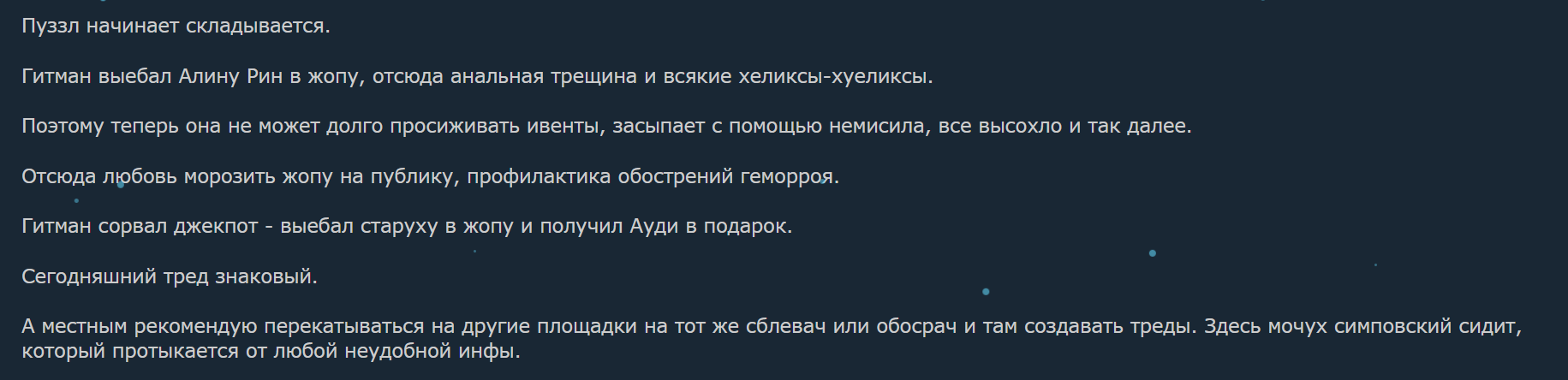 Бля, ору нах, там просто весь тред пузла почистил обеспокоенный кисик на модере