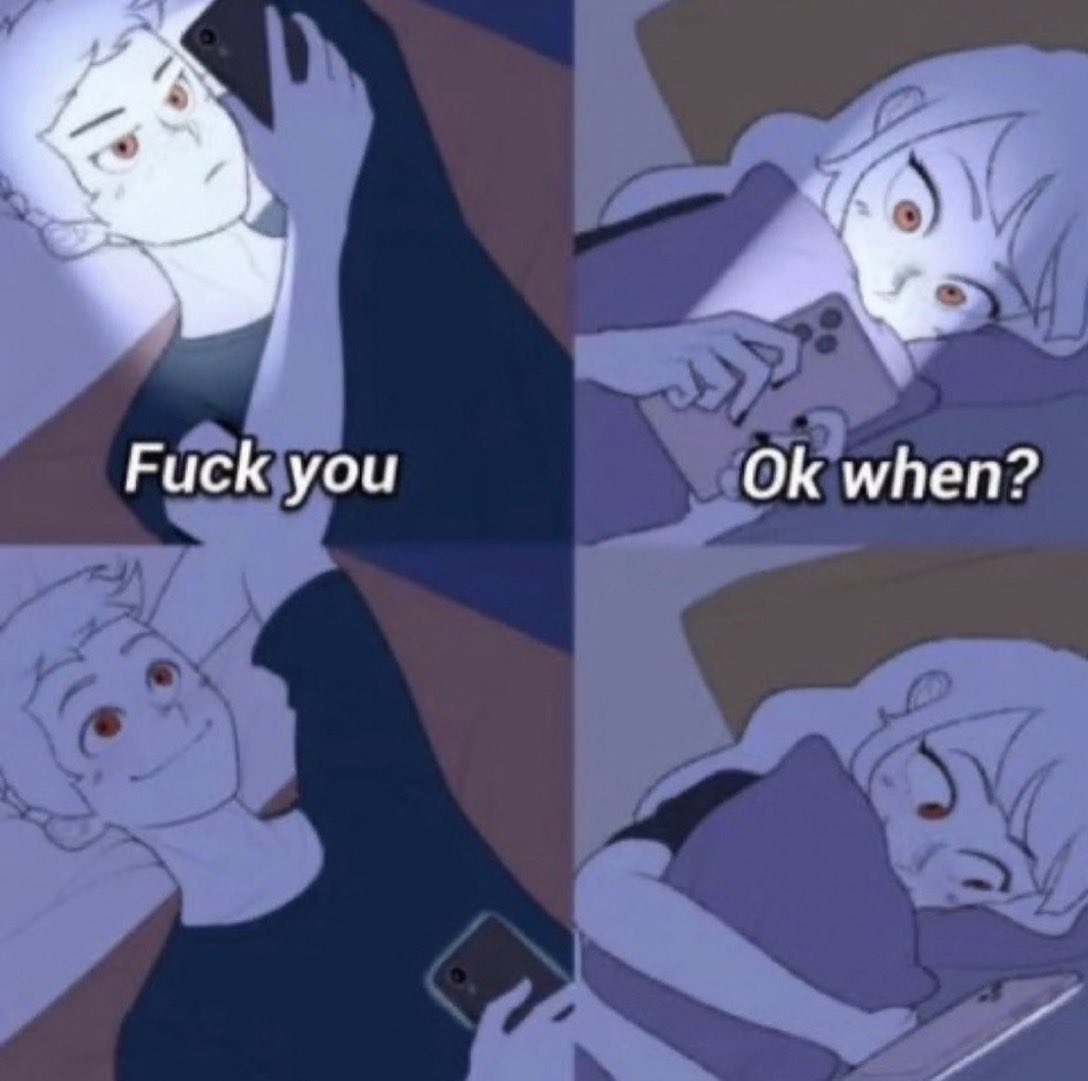 - Слышь чмодьё ебаное, думать не смей мою прошлую бабу шипперить. Ну ка быстро написал пост что между вами ничего не может быть. - К-к-к-как скажешь господин Гитман