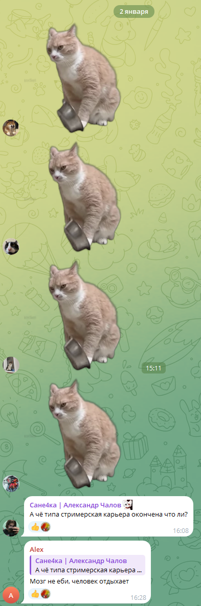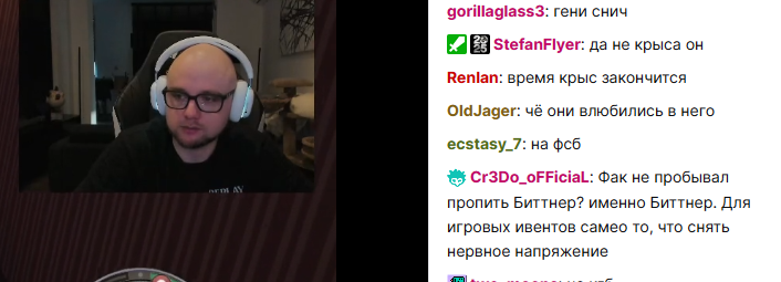 Прикинь ты гитман, ноль харизмы, внешка как у ленивца из ледникового периода, те просто так дают в жопу топ стримерши, илюха мэд лезет к тебе обниматься, прописывает бесплатно в одной из своих хат, дианочка рисует тебе тысячный онлик, когда у тебя два реальных зрителя и один из них бот, тебе за это еще и платят, а ты тупа десять часов в компик играешь....