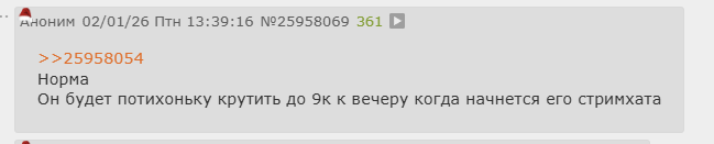 >>25959664 >про патрики чё-то пиздел он от балды это ляпнул, когда симп в донате его заебал с ней, он только завел после очередной попойки казик открутить, а тут "а рыжопич пук среньк" можно даж не вспоминать этот полувысер, кста его поинт, что так хотел сделать, чтоб ее перестали его чемоданы заебывать с видосами с ним, я поверив, звучал логично, она и рил после этого такая "ну у нас конфликт, давай деньни верну или перезакажи, не будем смотреть человека, который меня хуесосит", было в их отношениях такое. ща дала зеленый свет, но сами чемоданы вроде перестали особо жопичем срать