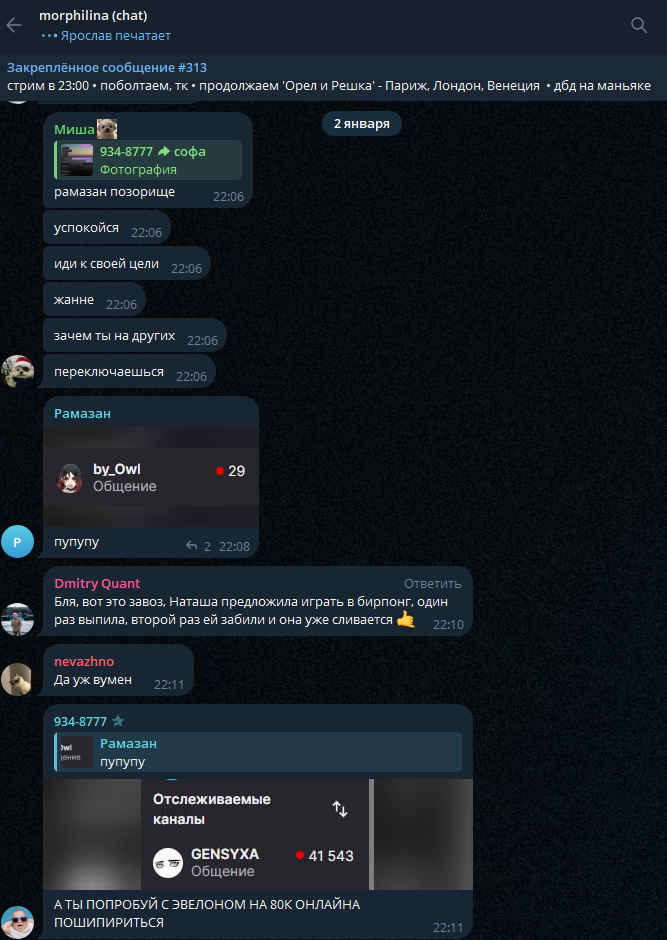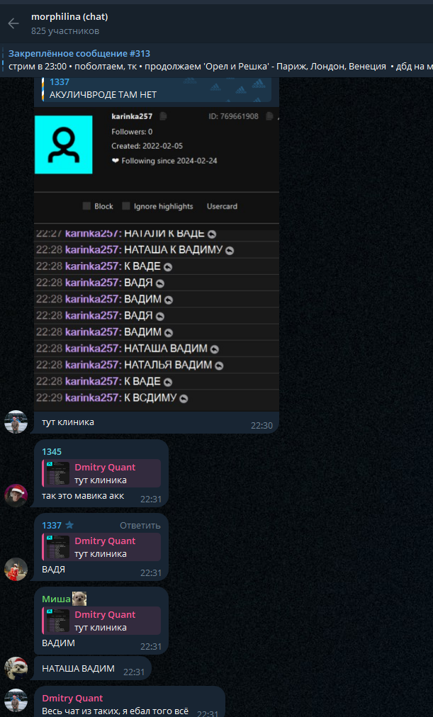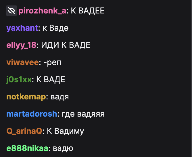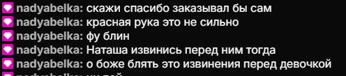 Единственное от чего у Наташи реально тильт и неловкость это от того, что про нее постоянно спамят. Реально уже делают из Вади и Наташи собачек которые должны делать то что чату хочется