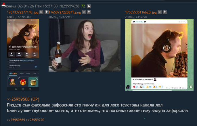Предлагаю два подсостреда слить в один нахуй нужен подсосов какого-то ноунейма на 700 зрилов(фолентаса), когда там одну фасольку обсуждают, и то один шиз, который чекает когда она спать пошла и когда ее бывший онлайн появился и тд. Кстати успешный стример несменный ебырь(уже 6 лет) фасольки выглядит так
