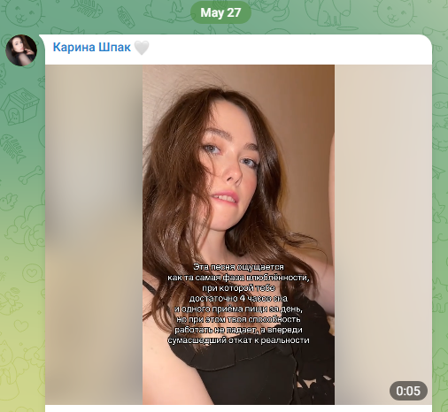 А Тоня Резник походу реально расстался с той девчонкой, с которой изменил летом Шпачихе. Вот посты из ее канала, где в одну и ту же дату она с другим парнем. В это же самое время Резник со Карлиной в своих тгк гиенили с шуток про бывшую девушку, намекая на ту девчулю