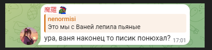 Ещё репортнули Ненормову зачем-то... долбоёбы, в ногу себе стреляете, вам завозят контент, что вы ждали, а вы бежите репот писать. Необучаемые.