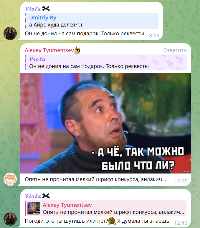 забавно, что женя не назвала ник заврика, когда прилетело 33к, еще дуется