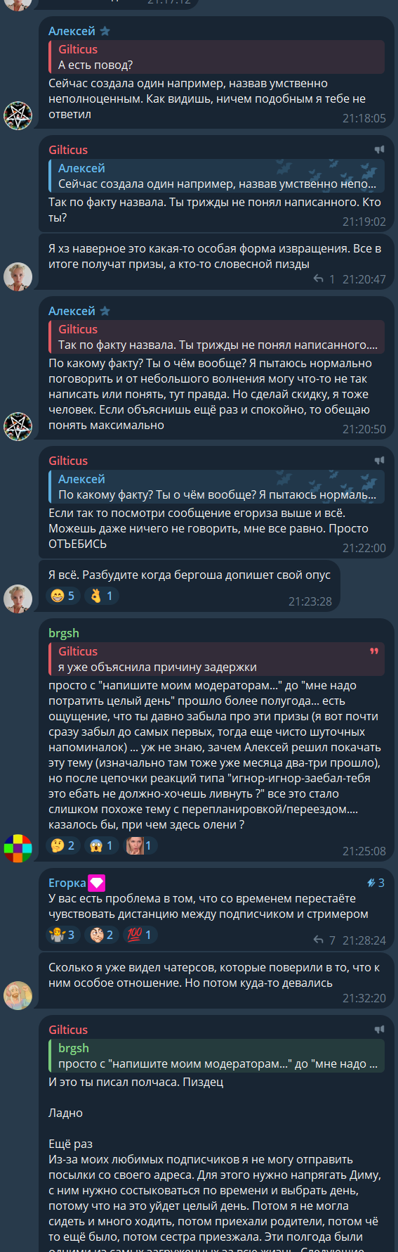 Пиздец у башкирского шиза крыша протекает, он недоволен уже не какими-то там сообщениями с претензиями, а реакцией на пост(!). Бля, у меня нет слов, это какой-то кибергулаг имени Дениса Хамитова. И симпы это терпят и продолжают донатить.