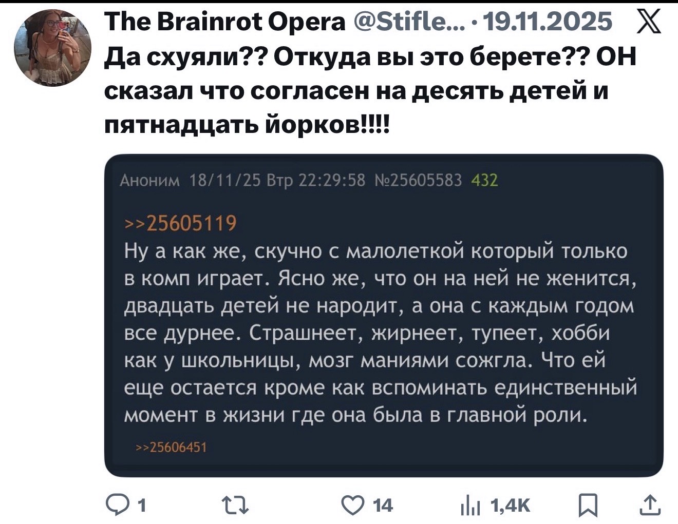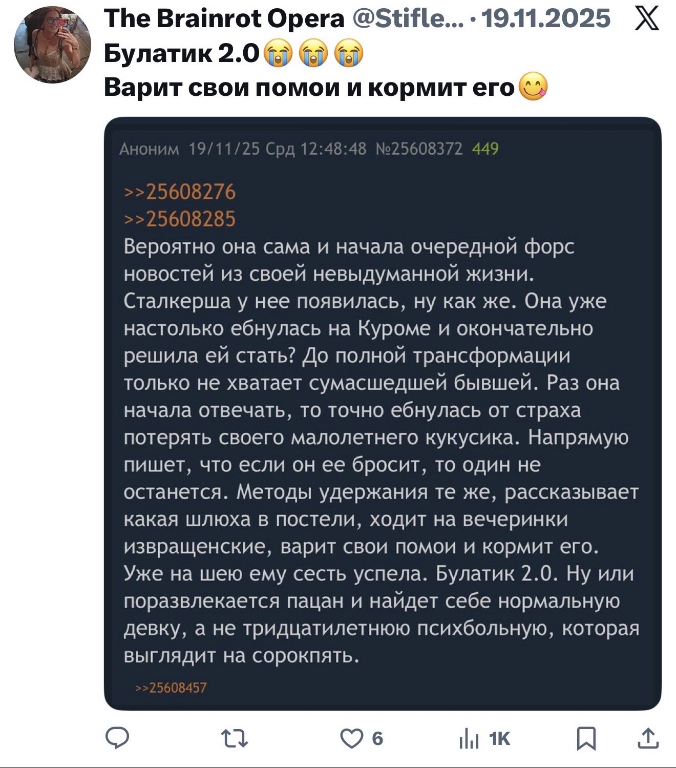 >>25980315 Это старый высер >>25980294 психологини из треда хуйши на хх. Я иногда туда кидал пасты с багиньки и эта дура на них с энтузиазмом отвечала, лол.