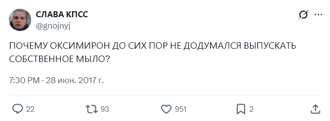 А почему думаете оксижопеч удалил твитор и вк? Он типа выпукнул альбом, просто чтобы отъебались и решил уйти вообще как бабан? Плюшевый вообще считает, что анонс ипи это шутка у него такая была и ипихи быть не должно было, но он типа снизошёл напоследок. Собсна в каком-то треке окс так и говорит - не планировал возвращаться