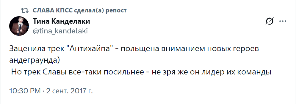 Че как думаете почему жопич с сасаем поругались? У меня два предположения 1. Слава сейчас в прайме, денег дохуя, но откладывает их на рождение бебика и куроме отдает. А сасай доедает хуй без соли в берлине, концертов нет, музыку не выпускает, сын проедает деньги, слава не хочет писаться вместе, он лучше с ог будой или принцем тусовать будет, денег от этого для своего бебика больше будет. Вот и поругались 2. Из-за полит позиций. Замай жестко против сво и муток россии, а жопич массивной жопой сидит на двух стульях, берет бабки от ИРИ, пишется с зетниками типо Зангези. Они еще пока Замай был в россии расходились в категоричности взгляда на сво. Плюс может у них был договорнячок что они оба съебут из страны, но по итогу жопич затерпел. Ну и сасай вон как с пукером мощно посрался, а жопич его на фит пригласил на альбом. Потому что с пукера сейчас тоже можно поиметь копеечку, он стал рукопожатным, а не кринжовой пиявкой. А с сасая ничего не поимеешь