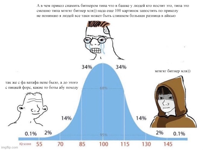 прикиньте я такой прихожу к друзьям плачу пачиму вы все говорите именно битнер у вас айсикью маленький уаааааааааааа и все усыкаются наху какой я опущ вот это мемас получился