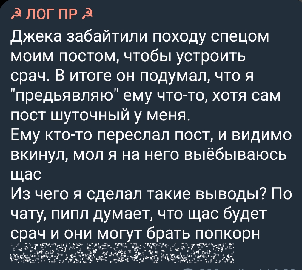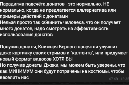 Диалектика. Джек пишет, что он вынужден делать политический слоп ради донатов Криштофф пишет, что это хорошо потому что у Джека есть камера и лгбт подсветка на студии