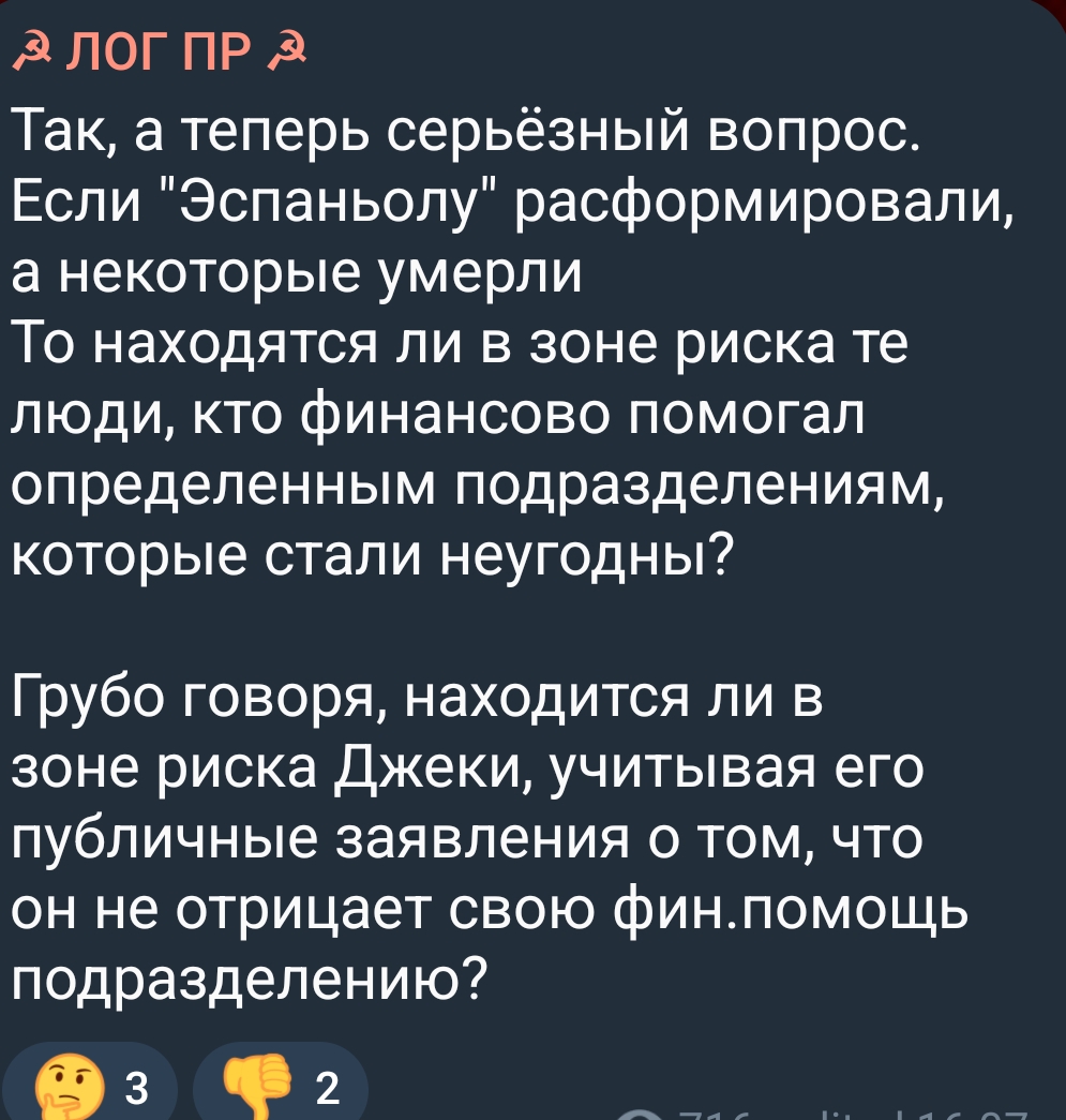 Лохи тут только поцреоты Я не понимаю логику паразитов. Я вижу это иначе. Я вижу поддержку людей, ресурсы (деньги) и связи, и это всё можно использовать, чтобы менять социальную ткань общества Но вместо этого эти пидоры сидят и дрочат писю, пердя попутно в стул.