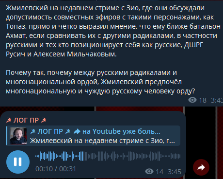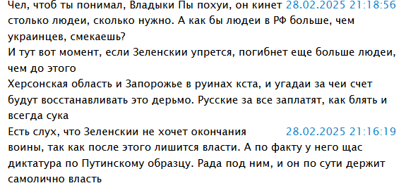 Ну пост интересный, потому что в /hry/ запостили речь про бородача, за которым охотится Топаз. Во-вторых, я на любую угрозу или запугивание реагирую. Но было бы похуй, если бы....речь не была про военных, издевательства над смертями, антигуманизм и прочее. Меня давно в укрофашистов записали и пытаются всячески приписать, что я якобы против добрых русских людей и прочую подобную хуету