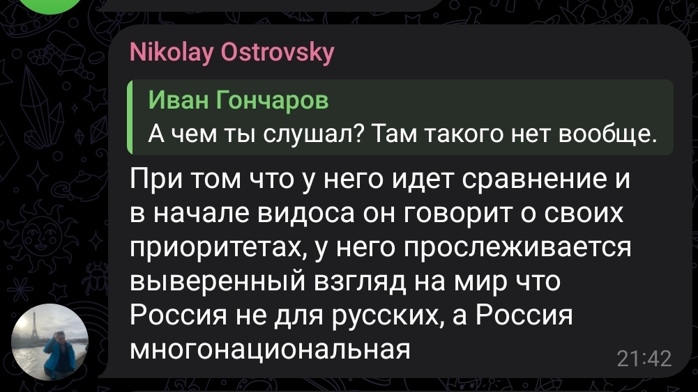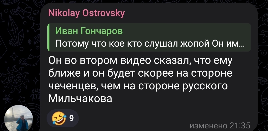 Лол, аргумент конечно сильный. Учитывая, что теперь Поздняков наш Z-слоняра и всё такое. Ты ещё принеси сюда слова Позднякова о русских женщинах и обвини меня в том же, что писал он.