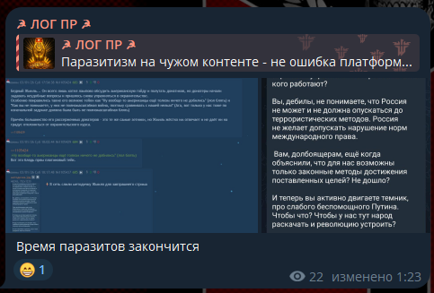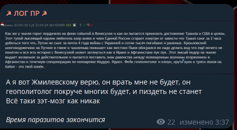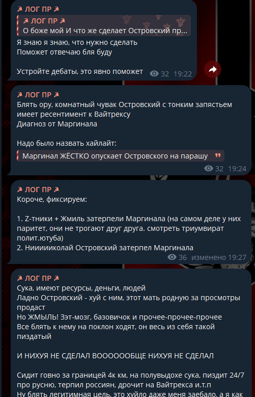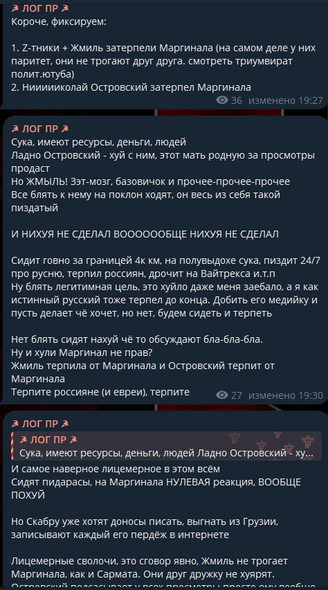И фича в том, что Маргинал может безнаказанно годами поливать их помоями, говном, грязью, смешивать всех русским с нечистотами, и поцреотам....нормально, им заебись же. Жмилю тоже заебись, Сармату, который это всё обсуждает тоже заебись.