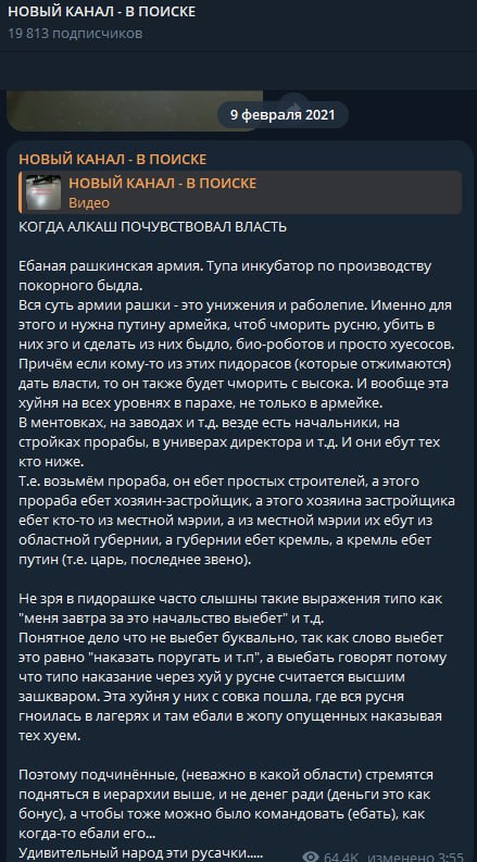 >>25984113 > Вот ты типичная пидораха > И да, Потапенко плохой, потому что слово "хохлы", как и "русня" - имеют сильный политический окрас. > Слово "Пидорахи" это сленг с борд, так что малораспространённый. Чудеса ментальной эквилибристики. Стоит только усомниться, что Криштофф наш русских патриот он тебя сразу называет пидерахой. Ну ладно, раз мы говорим, что это слово не имеет окраса потому что его не форсит Поздняков специально для тебя я нашел скрины из его старого канала.