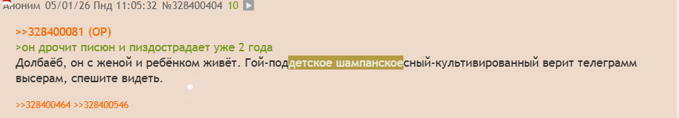 >>25987359 чел ты хочешь придумать оскорбительное погонялу челу который ссыт в ведро на стриме, и сидит потом весь в моче облитый его нельзя оскорбить уже