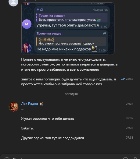 "В общем... Про Наташу, многим в чате интересно, наш шип набрал большие обороты, но всё хорошее когда-нибудь кончается. Может вы заметили, что после нового года мы перестали делать шип контент. У нас с ней был разговор и мы решили, что лучше всё закончить, чтоб не было вопросов в чате, чтоб не было спама. Так что знайте, взаимодействий у нас больше не будет"