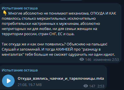 А вторая половина, Сисенька опять выводит на чистую воду баб мегаполисных, которые не умеют готовить и все РСПхи. Баб у Сисеньки не было, но слушайте Сисю. Он Эксперт во всем.