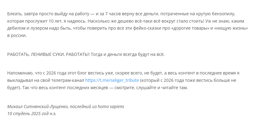 Хуево, наверно, живется когда поделится чем-то можно только с аудиторией, которая считает тебя клоуном, а других близких людей-то и нет. Кому Ситня будет про дрочку рассказывать и про свои влажные мечты, если блог вести перестанет?
