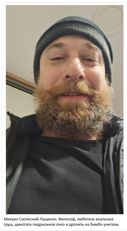 Михаил Ситнянский (Лущенко - ред.) - широко известный в узком кругу блогер. Он же Сисян, Сися. Кто такой, чем знаменит: питерский блогер (преимущественно текстовый), любитель "массажных салонов" (дрочилен, проще говоря), криптотрейдер, онанист, любитель побаловать очко массажером простаты, игрок в WoW, курьер Яндекс-еды, адепт эзотерического учения "Адвайта", любитель Таро и прочей шизотерики, человек Науки, настоящий мужчина и завидный жених Петербурга, Наполеон в своей квартире, а так же путешественник (если купание с SUPом можно назвать путешествиями).