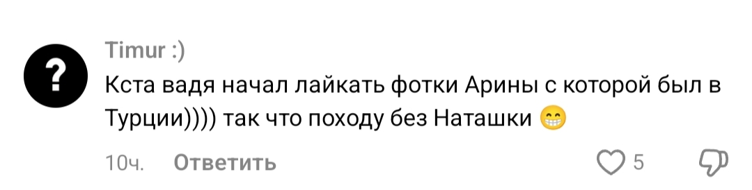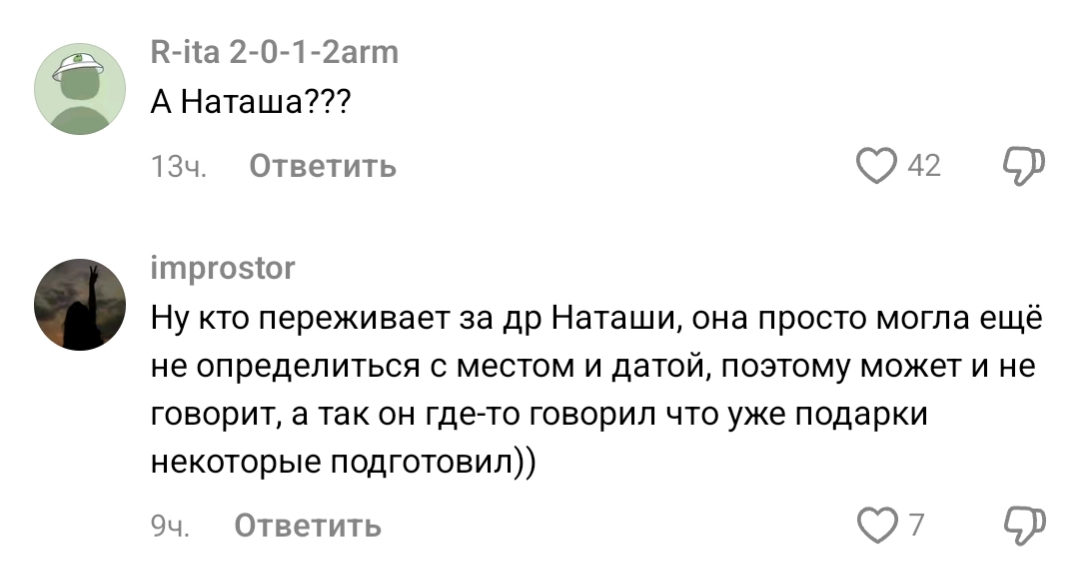 Ну как и ожидалось Наташа была в ебанутом тильте в Дубае ка ум все остальные потому что она эмпат. И сказала что по др ещё не знает где будет отмечать. Сказала чт оочень тщательно думает, что типо если у неё на др будет так же как на НГ то она никогда больше никуда не поедет, поэтому думает.