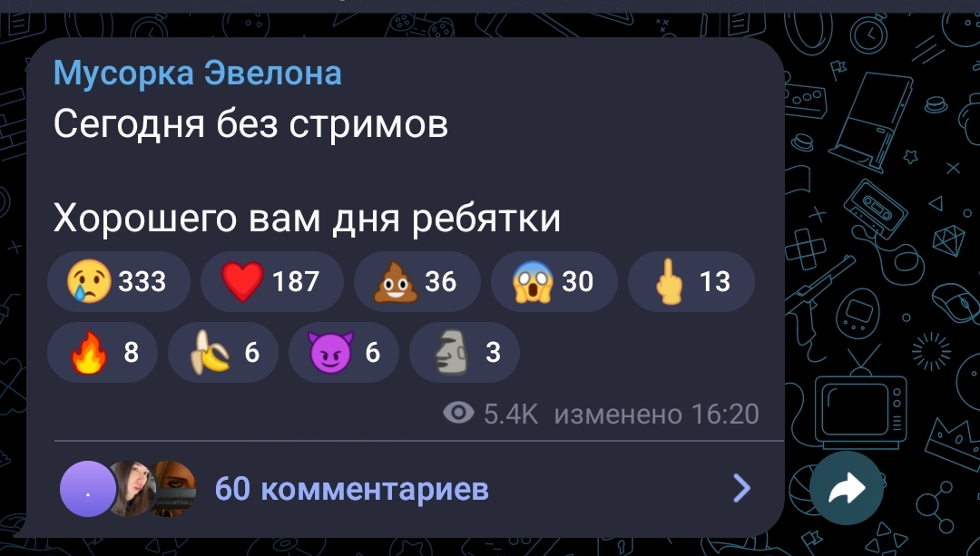 Бля, вот представьте что многие ощущают хуево себя после этих стримов с Дубая. Представьте как хуево на душе Ваде, который живёт стримами, зовёт друзей хотя бы раз в год всем вместе встретиться провести праздники, а в итоге получает полную хуйню, так ещё и хейтят за то что продакшен стрим сделал. Я кстати уверен в том, что его ситуация с Наташей тоже дамажит. Я вообще не понимаю, сука что он в голове такого напридумывал, что решил именно блять в НГ нахуй точку с Наташей поставить. Ну блять попробуй сука ты эти ебаные отношения, вдруг получится, нет блять надо в тильте резко оборвать все и потом полгода ещё восстанавливаться. Вся суть Вади блять