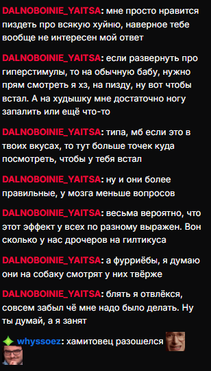 Самое забавное, что в него еще верят, ждут многослоек и попусков, о чем сама не раз говорила на стримах сама фасолька, что теперь и ей достанется и он ее съест, а жопич просто ушел плакать и записывать в тг всякую депрессивную хуйню и вести себя как попущенная каловая дудла лол
