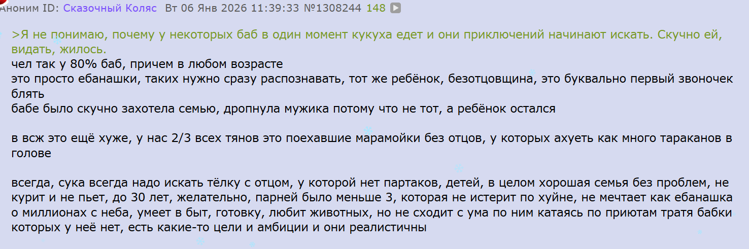 >>25995875 Мы вчера охуенно подискутировали на тему разводов конструктивно с пацанами, а если ты лох который не может в аргументацию и полемику то ты просто недостоин даже капчу вбивать в этом треде. Съеби нахуй в инцел-тред откуда ты и припёрся, те сколько раз надо чтобы до тебя дошло что тебе здесь не рады?