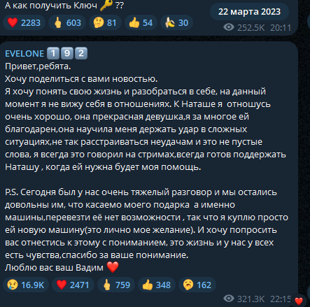 Вадим нихуя не делает, но при этом не заходит на стримы Наташи. Также было и до нг в Дубае , почему он не заходит вообще