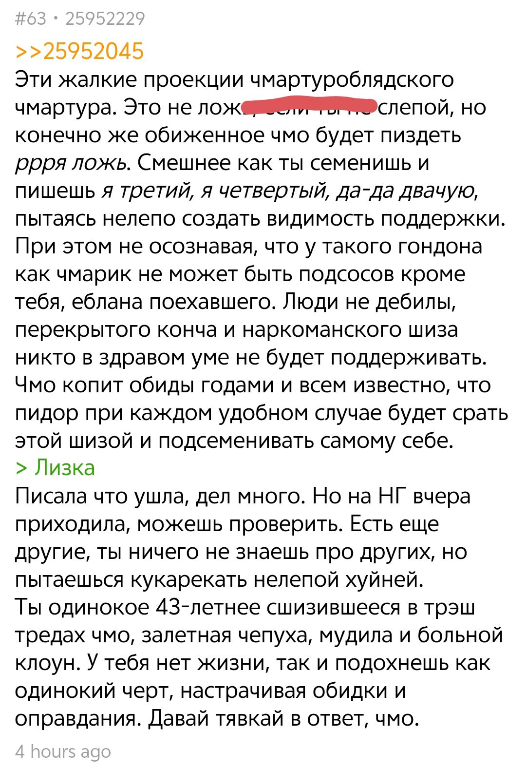 >>25951712 Какой же ты долбаеб. Залетный и шизовый. Хоть бы без ё писал не палился Я, как и многие итт олдфаг того треда с 2016. Не буду утомлять пересказом, просто, когда залетный долбаеб вроде тебя всех заебал, ( это я про Артура), я несколько раз порофлил над ним, косплея школьника, свинья возбудилась, слила свои шизодогадки чмарику, чмарик побежал в тред и архивач за «пруфами». Потом, на потеху фвгу, чмар стал носится с тем школьником. На беду ты увидел его «досье» в д и уверовал. Два долбаеба нашли друг друга.