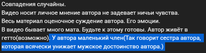 >>25967022 Ты сейчас это все время будешь вспоминать, пытаясь принизить? Посмотрел в свойствах файла, это 2021 год, тогда тред живой был, все развлекались как могли. У меня масса другого была гораздо круче, многое просто не сохранилось. Вон видео чуть выше с эпичным избиением и воплями, думаешь кто вырезал? Угадай с трех раз, если бы не я, такой вин никто бы не увидел.