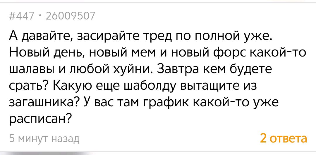 Прикольно, что есть тред, где можно пердануть в носяру кокивахтеру, а он в любое время дня и ночи что-то там тебе будет строчить. Есть куда сбросить газы. Алкаш сосал, кста