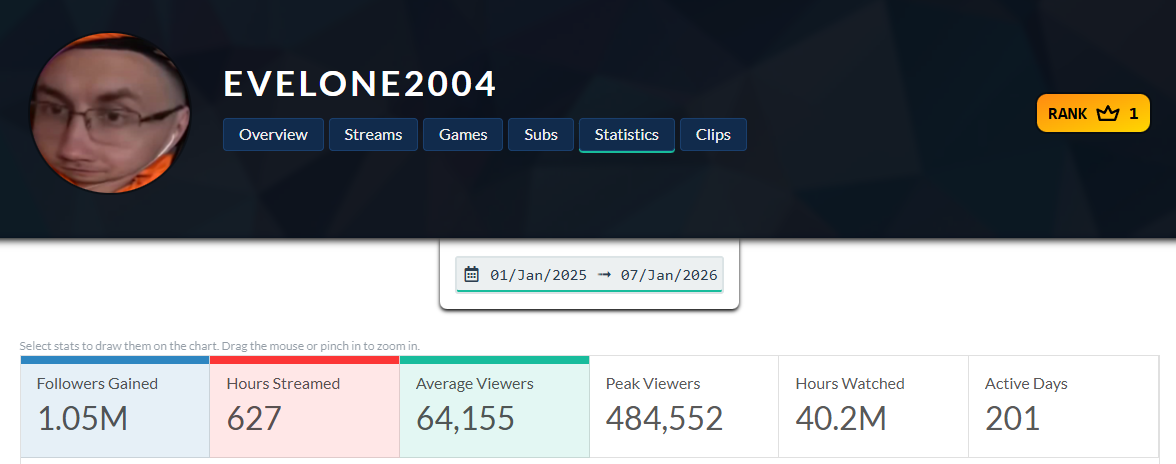 >>26006872 Ну по факту Глеб и Анар лучше Эвелона,офк онлайны по авг всё равно меньше,но эти стримят каждый день по кучи часов а у Эвелона может за неделю 2 стрима быть по 2 часа